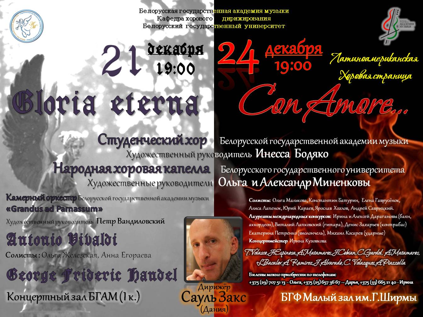 December 21 at 19:00 at the Concert Hall of the BGAM (1 h.) a concert “Gloria eterna”, dedicated to the 80th anniversary of the Belarusian State Academy of Music.