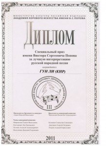 По результатам совещания жюри звание«Лауреат I премии» IIIМосковского конкур-са хоровых дирижеровне присуждено никому. Лауреатом II премиистала Гун Ли (Китайская Народная Республика, аспирантка Белорусской государственной академии музыки). Она же получила специальную премию имени Виктора Сергеевича Попова «За лучшую интерпретацию русской народной песни».