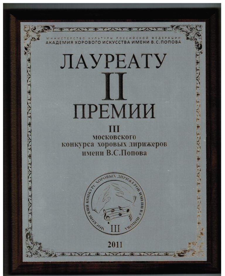 Московский конкурс хоровых дирижеров – это уникальное художественное событие, организованное АХИ в 2005 году. Конкурс родился благодаря идее народного артиста СССР, выдающегося хорового дирижера Виктора Сергеевича Попова, имя которого носит академия. Это единственный конкурс, в котором отсутствует тур по технике дирижирования под рояль, что является его главной отличительной особенностью. Будучи проведенным в третий раз, конкурс перерос в международное событие. В нем приняли участие дирижеры из России (Москва, Магадан, Санкт-Петербург, Казань, Нижний Новгород, Пермь, Ижевск, Челябинск, Рязань и другие города), ближнего и дальнего зарубежья (Азербайджана, Казахстана, Белоруссии, Китая). Конкурсное жюри возглавил народный артист СССР, профессор Санкт-Петербургской консерватории им. Н. А. Римского-Корсакова, художественный руководитель Государственной академической капеллы Санкт-Петербурга Владислав Александрович Чернушенко. Среди членов жюри были авторитетные представители музыкальных вузов и руководители выдающихся музыкальных коллективов: профессор, декан дирижерского факультета, заведующий кафедрой хорового дирижирования Московской консерватории С. С. Калинин; ректор Российской академии музыки им. Гнесиных Г. В. Маяровская; художественный руководитель Академического большого хора Российского государственного телерадиоцентра, профессор МГК Л. Г. Конторович; композитор Г. П. Дмитриев; дирижер Московского театра «Новая опера имени Е. В. Колобова» Д. Г. Волосников, руководитель Московского синодального хора А.А. Пузаков и заведующий кафедрой хорового дирижирования АХИ имени В. С. Попова, лауреат I премии I Московского конкурса хоровых дирижеров А. К. Петров.