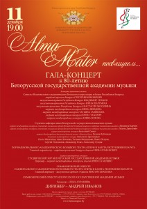 11 декабря в 19.00 в зале Национального академического большого театра оперы и балета состоится Гала-концерт к 80-летию БГАМ. В концерте примут участие солисты НАБТ Республики Беларусь: народный артист РБ Сергей Франковский, заслуженные артисты РБ Владимир Громов, Нина Шарубина, Анастасия Москвина, лауреаты международных конкурсов Татьяна Гаврилова, Елена Шведова, Елена Таболич, Елена Золова; студенты кафедры пения БГАМ, лауреаты и дипломанты международных конкурсов, стипендиаты специальной премии президента по поддержке талантливой молодёжи; Хор НАБТ РБ, главный хормейстер – народная артистка Беларусь, доцент Нина Ломанович; лауреат международных конкурсов Студенческий хор БГАМ, дирижёр – лауреат международных конкурсов, доцент Инесса Бодяко; Симфонический оркестр НАБТ РБ, главный дирижёр – заслуженный артист Украины Виктор Плоскина; Симфонический оркестр БГАМ.