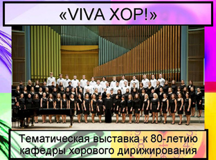 с 14 по 24 ноября в фойе концертного зала первого учебного корпуса будет проходить тематическая выставка «VIVA ХОР!», приуроченнуя к 80-летию кафедры хорового дирижирования Белорусской государственной академии музыки.