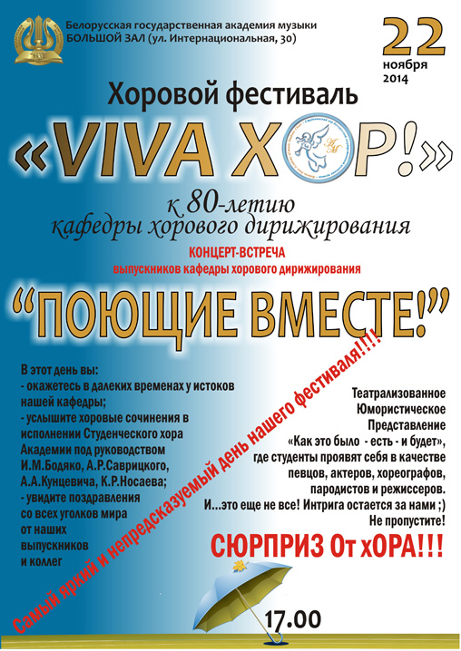 -выступление студенческого хора под руководством Инессы Бодяко, Андрея Саврицкого, Андрея Кунцевича и Кирилла Носаева.