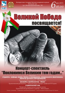 6 мая в 18.00 в Большом зале академии музыки состоится концерт-спектакль ” Поклонимся великим тем годам…” , посвященный 70-летию Великой Победы!
