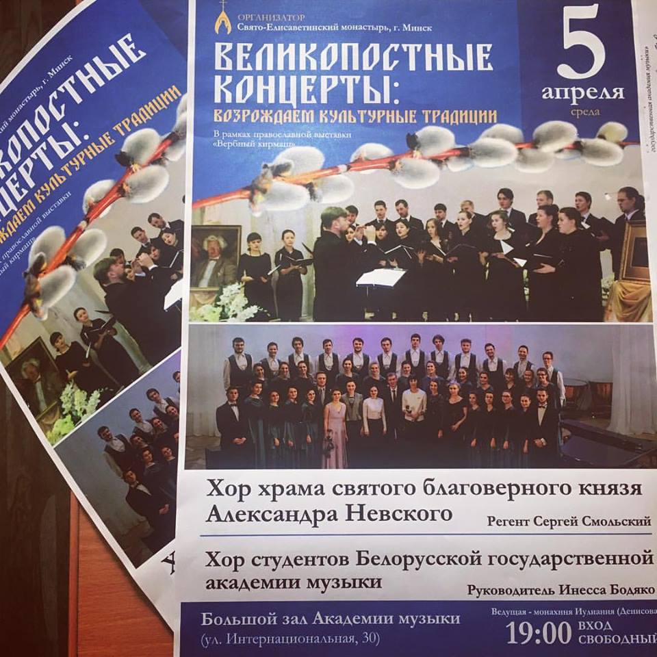 В рамках великопостных концертов 05.04.2017 состоится концерт студенческого хора БГАМ (дирижируют студенты 5 курса) и хора храма святого благоверного князя Александра Невского (регент Сергей Смольский).