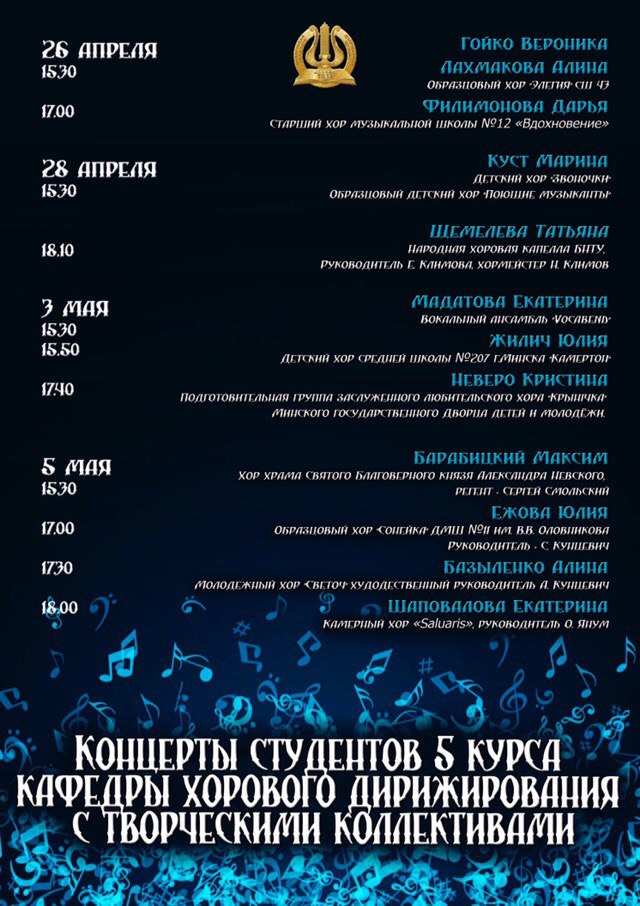 В 410 зале Белорусской государственной академии музыки состоится фестиваль выпускников, в котором мы увидим их творческую работу с разными коллективами.