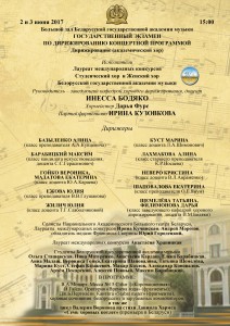 2 и 3 июня 2017 года в 15:00 состоится Государственный экзамен по дирижированию выпускников кафедры “Хоровое дирижирование”, который пройдёт в Белорусской государственной академии музыки.