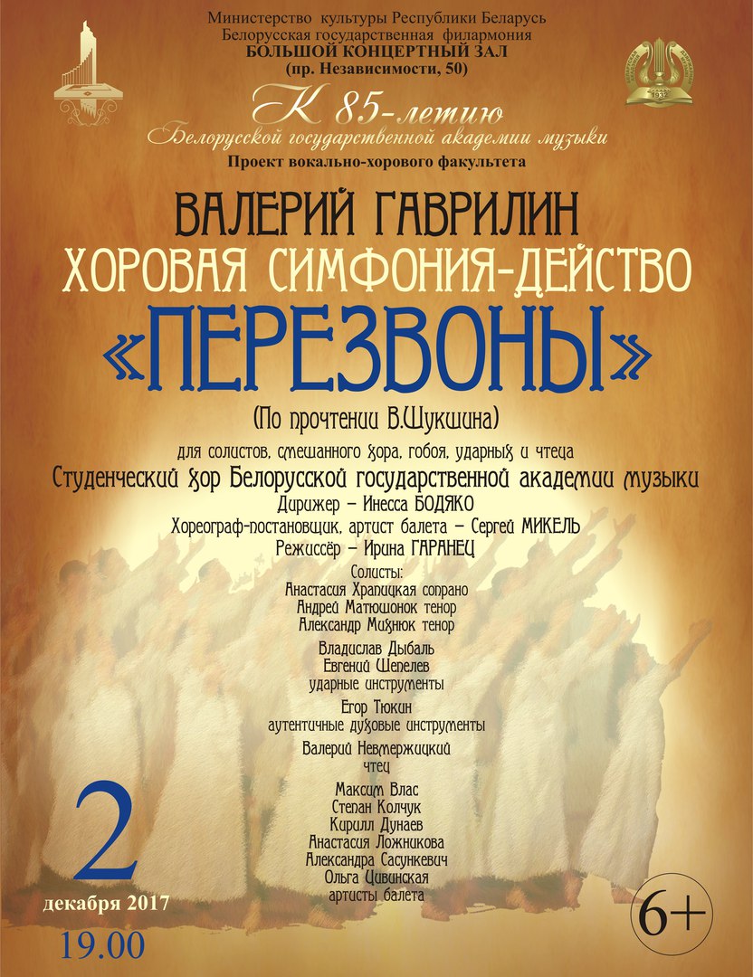 Концерт состоится 2 декабря в 19:00 в большом концертном зале Белорусской Государственной филармонии.