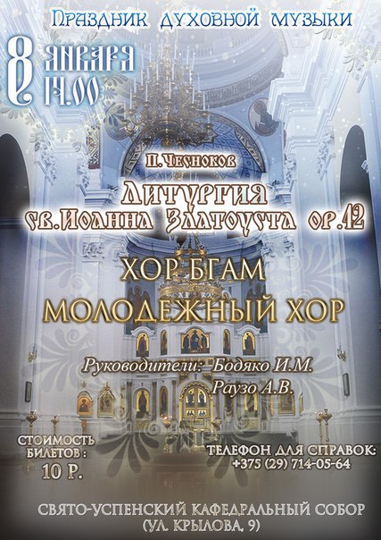 Концерт будет проходить в Свято-Успенском Кафедральном соборе. Стоимость билета: 10 р.