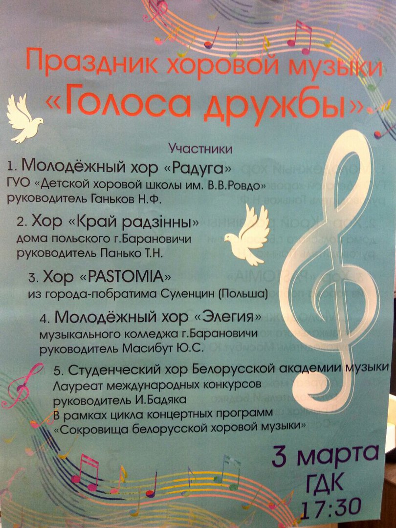 1. Молодёжный хор “Радуга” ГУО “Детской хоровой школы им. В.В.Ровдо”. Руководитель – Ганьков Н.Ф.