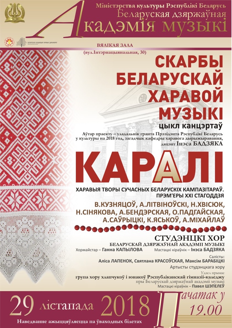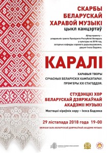 29 ноября 2018 года состоится необычайное событие! В рамках цикла концертов “Скарбы беларускай музыкi” в белоруской государственной академии музыки состоится концерт “КАРАЛI”.