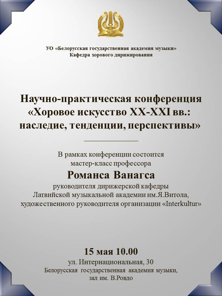 «Хоровое искусство XX-XXI вв.: наследие, тенденции, перспективы» 14-15 мая 2019