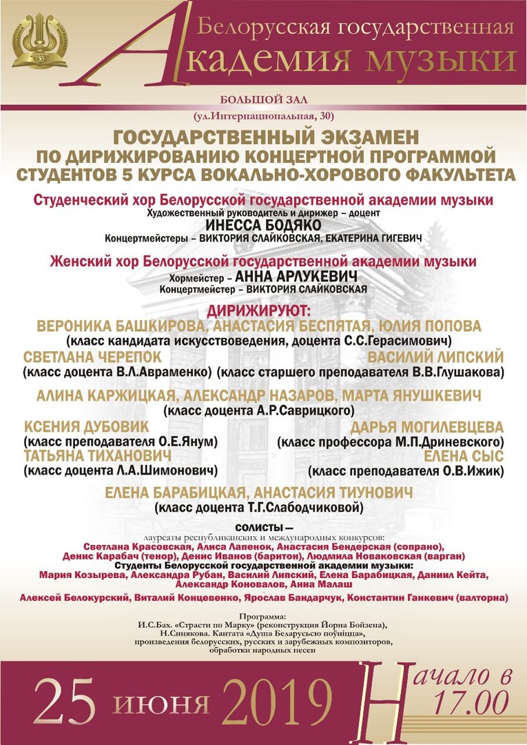 Приглашаем всех на Государственный экзамен по дирижированию студентов 5 курса!!!