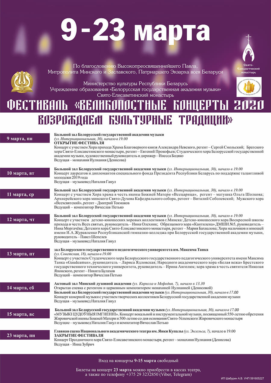 С 9 по 23 марта 2020 года состоялся масштабный фестиваль “Великопостные концерты 2020. Возрождаем культурные традиции”