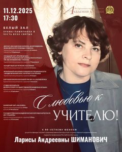 11 декабря в Храме-памятнике в честь Всех Святых, Студенческий хор Белорусской государственной академии музыки вместе с другими замечательными коллективами выступили на концерте, посвященном 90-летию доцента кафедры хорового дирижирования Белорусской государственной академии музыки, лауреата профсоюзов Республики Беларусь – Ларисы Андреевны Шиманович.